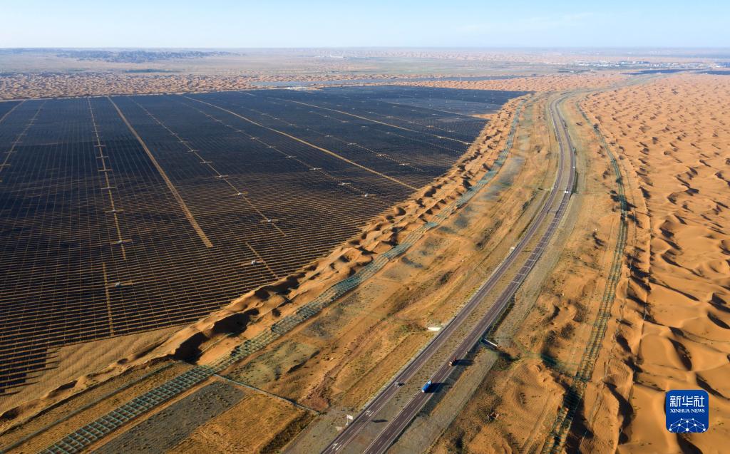 7月21日拍攝的烏瑪高速青銅峽至中衛段穿越騰格里沙漠的18公里高速公路(無人機照片)。