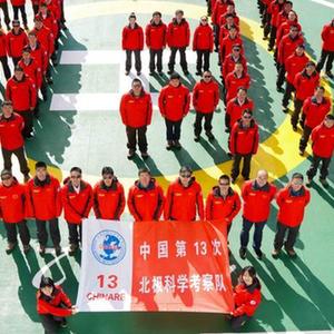 7月25日,為紀(jì)念中國(guó)第13次北冰洋科學(xué)考察隊(duì)穿越北極圈,考察隊(duì)全體成員在“雪龍2”號(hào)極地科考破冰船直升機(jī)甲板組成“13北”字樣合影留念。