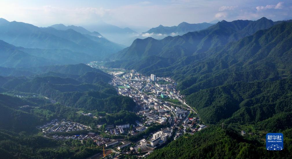 位于秦嶺深處的陜西省漢中市留壩縣城(7月25日攝,無人機照片)。