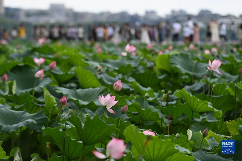 時值盛夏,杭州西湖景區荷花競相綻放,呈現出“接天蓮葉無窮碧,映日荷花別樣紅”的美麗景象。
