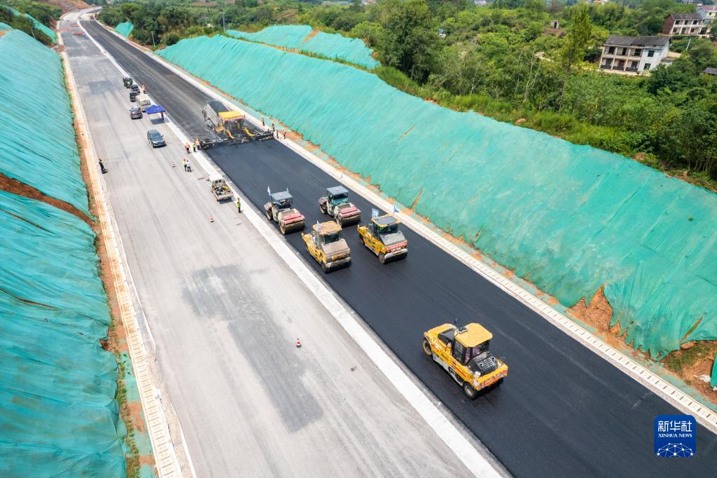 這是7月25日拍攝的衡永高速路面工程施工現(xiàn)場(無人機照片)。