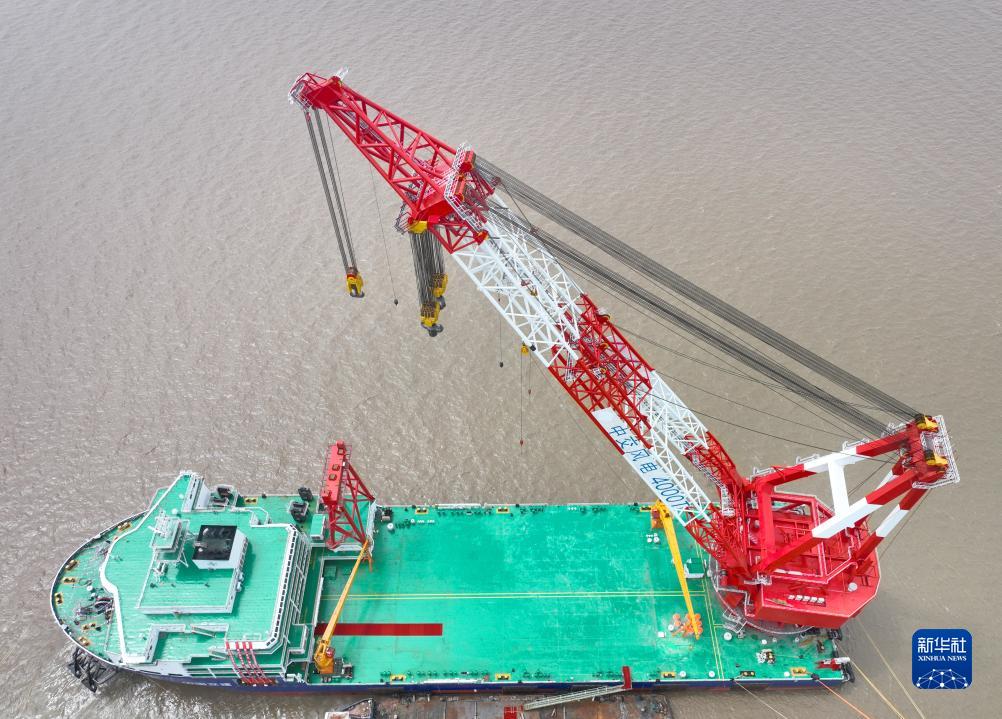 7月25日在振華重工啟東海工碼頭拍攝的4000噸全回轉起重船“海峰2001”(無人機照片)。
