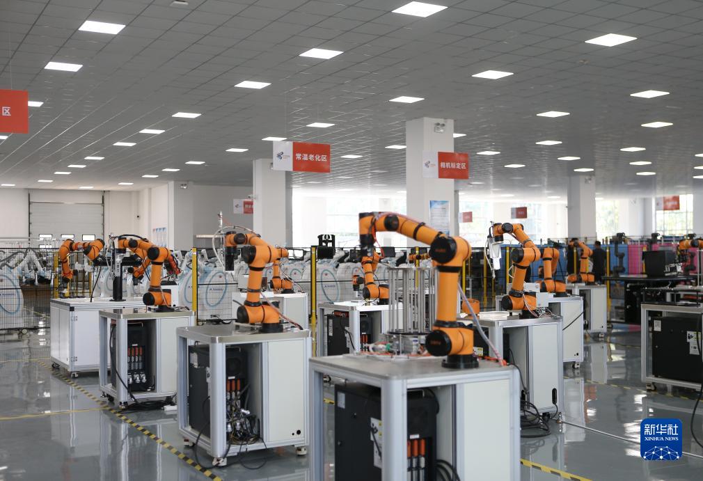這是7月25日在遨博(山東)智能機器人有限公司拍攝的協作機器人。
