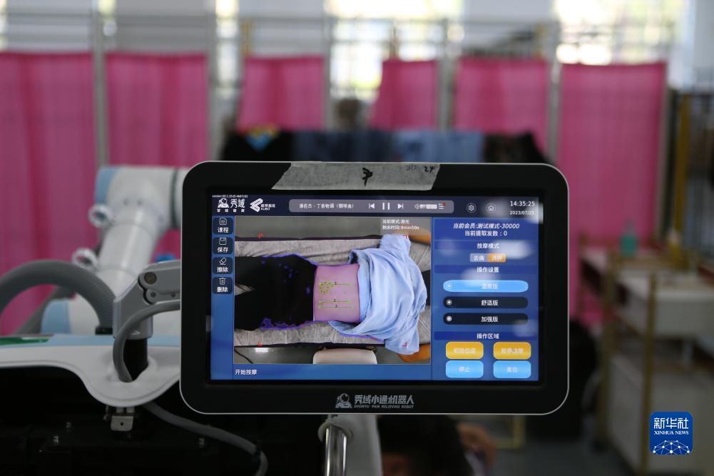 7月25日,在位于淄博市臨淄區(qū)的遨博(山東)智能機(jī)器人有限公司,一名男士在體驗(yàn)該公司開發(fā)的康復(fù)理療機(jī)器人。