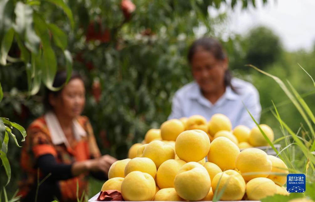 時(shí)下,貴州省銅仁市玉屏侗族自治縣種植的黃桃迎來(lái)收獲季,果農(nóng)們忙著采摘、分揀、搬運(yùn)黃桃,供應(yīng)市場(chǎng)。近年來(lái),玉屏侗族自治縣把發(fā)展黃桃產(chǎn)業(yè)列為鄉(xiāng)村振興工作的重要支柱產(chǎn)業(yè),通過(guò)出臺(tái)政策支持、東西部協(xié)作資金幫扶、擴(kuò)大種植面積、發(fā)展精深加工等措施,逐步發(fā)展壯大黃桃產(chǎn)業(yè),促進(jìn)當(dāng)?shù)剞r(nóng)民持續(xù)增收。新華社發(fā)(胡攀學(xué) 攝)