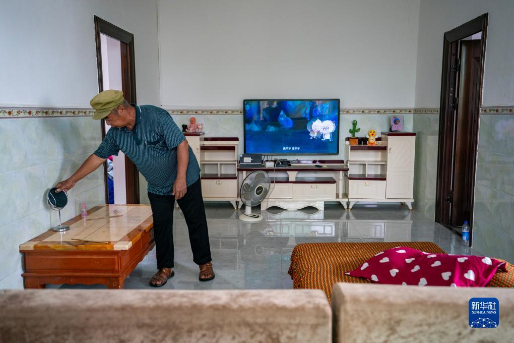 張普忠收拾客廳準(zhǔn)備出門(7月23日攝)。新華社記者 陳欣波 攝