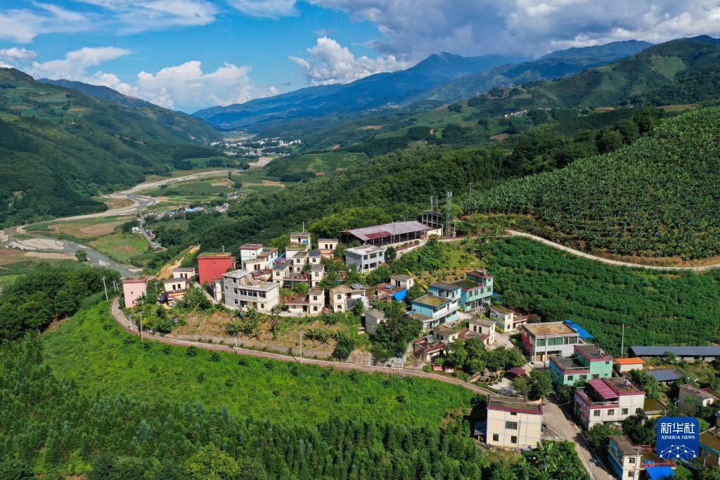 這是金平縣者米鄉一處苦聰人搬遷定居的村莊(7月23日攝,無人機照片)。新華社記者 陳欣波 攝