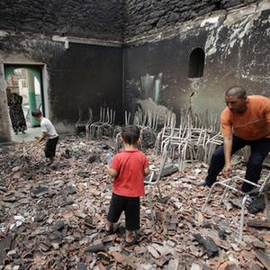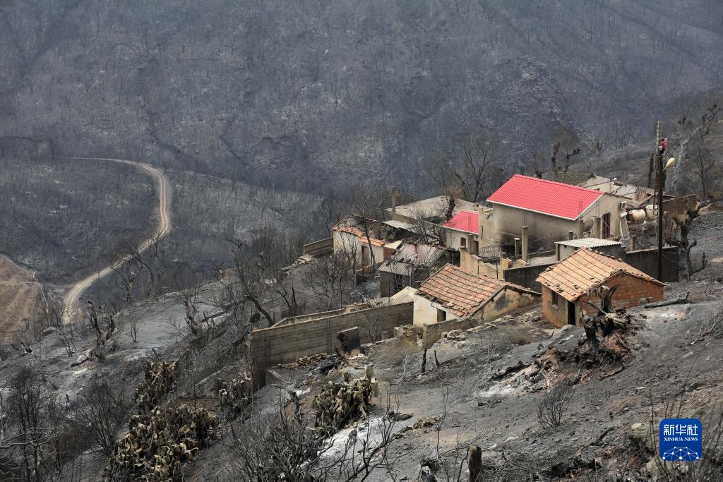 這是7月25日在阿爾及利亞貝賈亞省拍攝的被野火燒毀的房屋。
