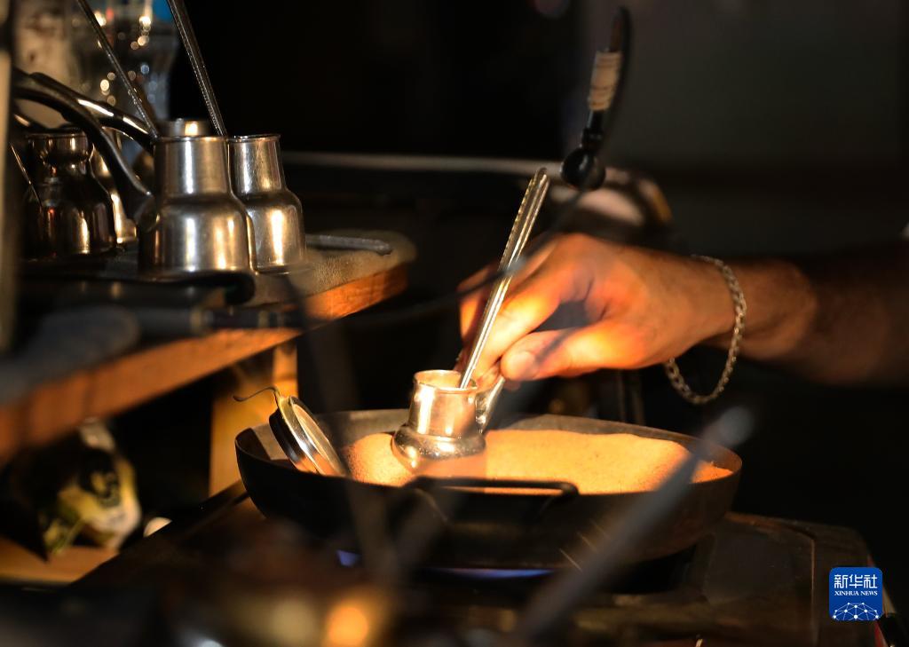 7月25日,在埃及開羅街頭,一名男子用汽車后備箱中的設備制作咖啡。