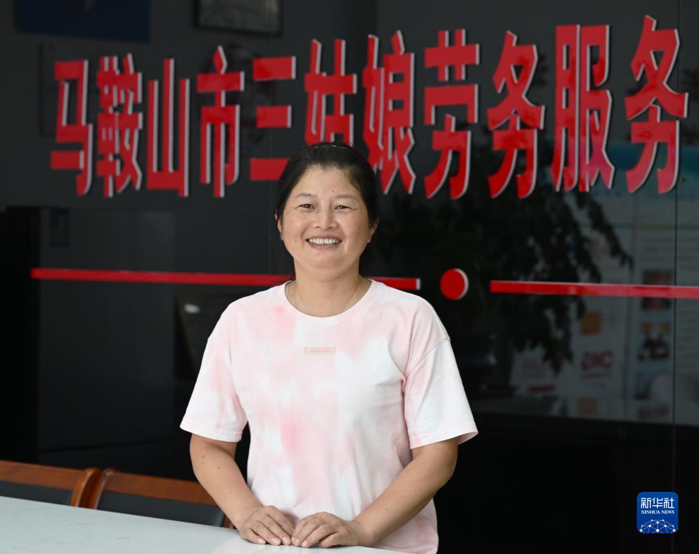 7月24日,陳蘭香在馬鞍山市三姑娘勞務服務有限公司留影。新華社記者 周牧 攝