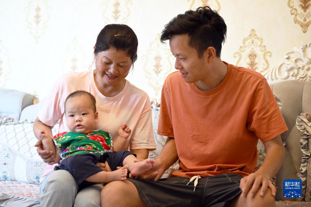 7月24日,陳蘭香和兒子張成偉、孫子張錦亦在上岸后的新家里。新華社記者 周牧 攝