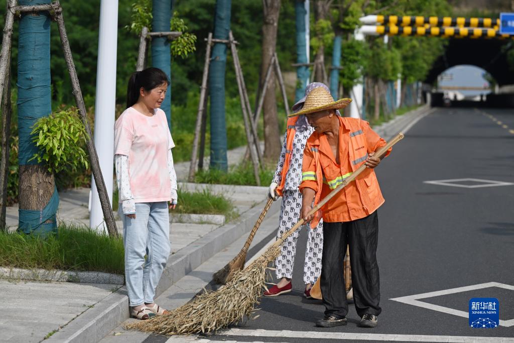 7月24日,陳蘭香(左)在馬鞍山市雨山區三姑娘勞務服務有限公司一處勞務項目地點查看。新華社記者 周牧 攝