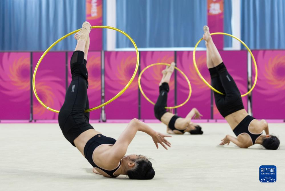 7月25日,中國大學(xué)生藝術(shù)體操隊(duì)的選手們在成都體育學(xué)院體操館訓(xùn)練。