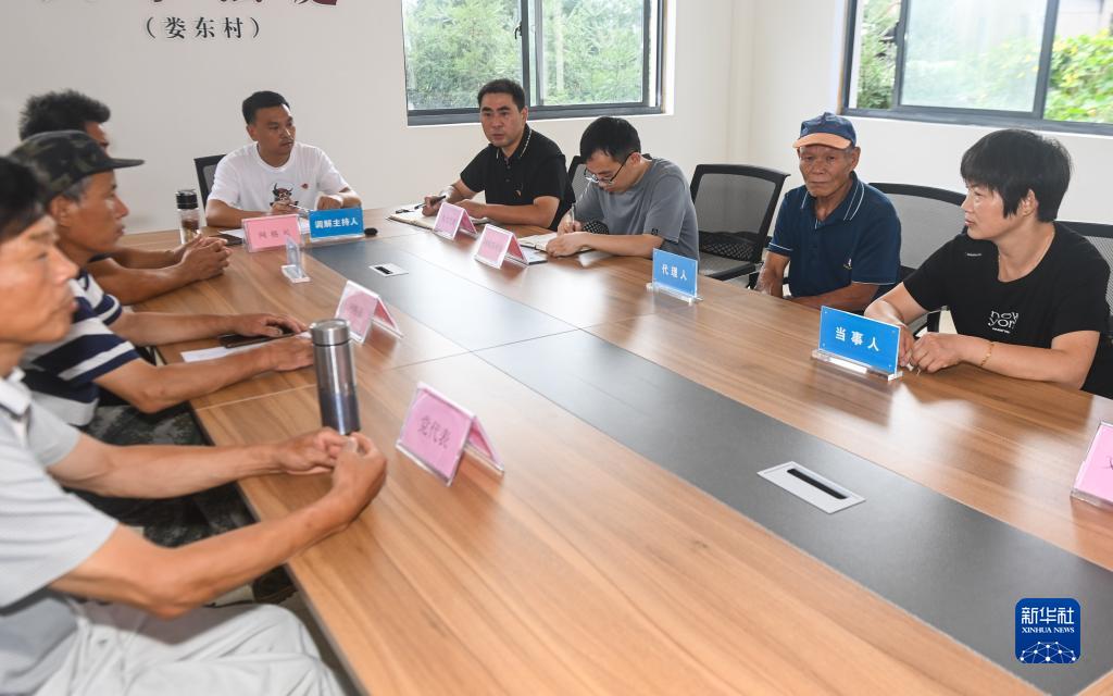 7月26日,在東白湖鎮(zhèn)婁東村新時代文明實踐站的文明共富會客廳內(nèi),網(wǎng)格長召集村里矛盾雙方當事人以及黨員代表、鄉(xiāng)賢代表、人大代表等成員進行宅基地指標糾紛的現(xiàn)場調(diào)解。