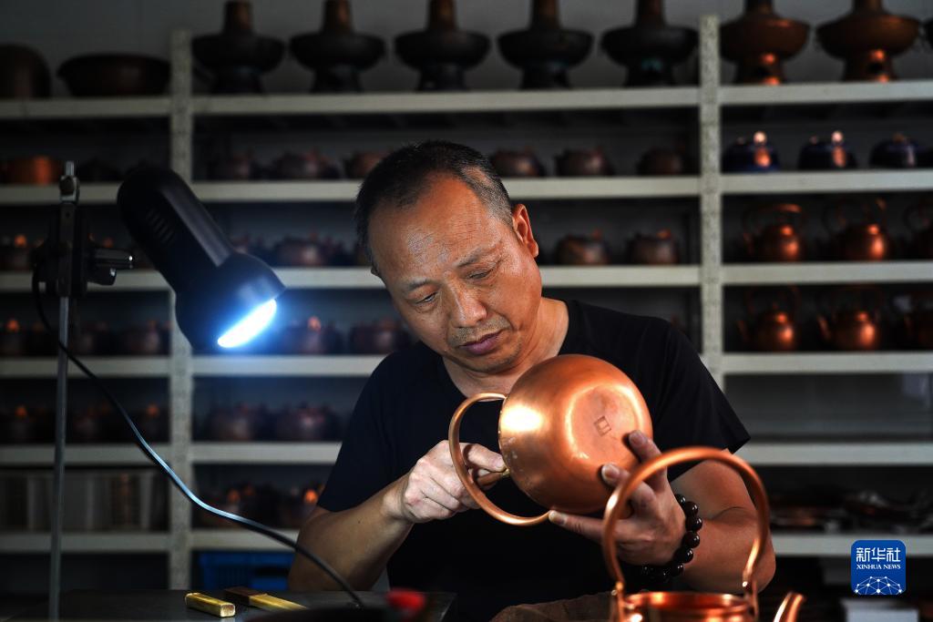 鏨銅雕刻也稱銅雕、銅鏨刻,是指利用銅的延展性,用鏨刀在銅器物上刻劃出各類圖案,距今已有上千年歷史。2021年,貴溪鏨銅雕刻入選國家級非物質文化遺產(chǎn)代表性項目名錄擴展項目名錄。完成一件銅雕作品,需要150多種不同的鏨刀和勾、落、點、采、絲等十多種技法。一把銅壺要經(jīng)歷10萬次以上的敲打。