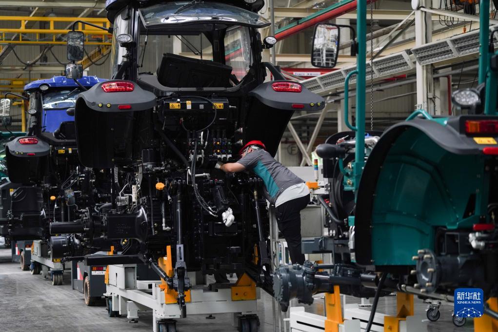 7月26日,在位于濰坊市的濰柴雷沃智慧農業科技股份有限公司,工人在組裝拖拉機。