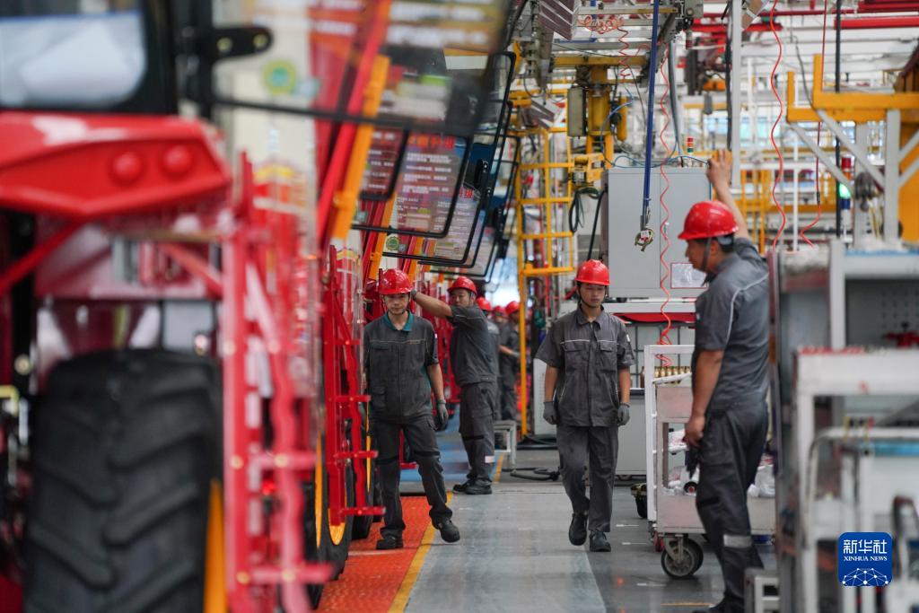7月26日,在位于濰坊市的濰柴雷沃智慧農業科技股份有限公司,工人在車間流水線上忙碌。