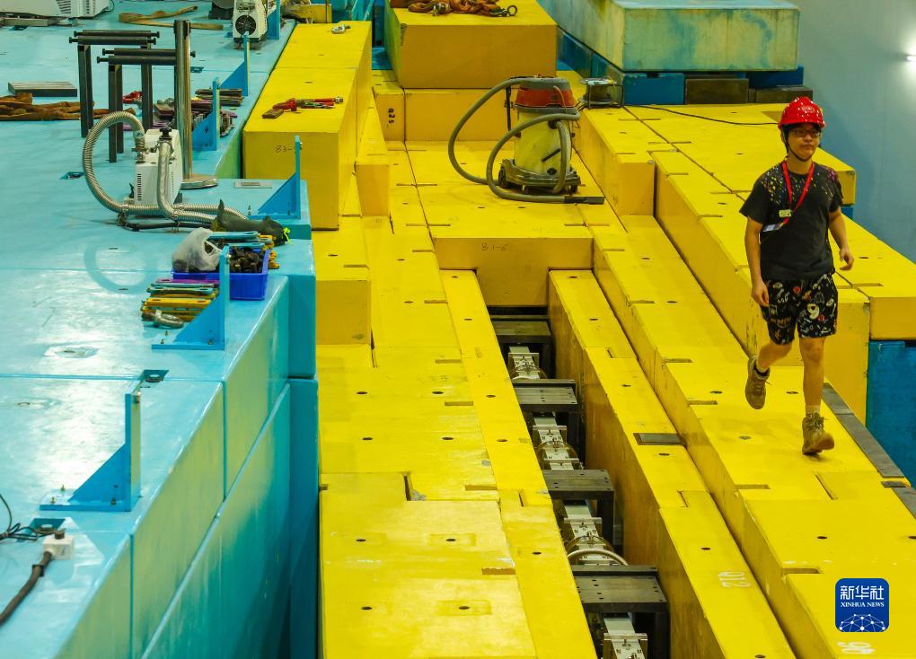 工程師在中國(guó)散裂中子源進(jìn)行高分辨中子衍射儀設(shè)備安裝(7月18日攝)。