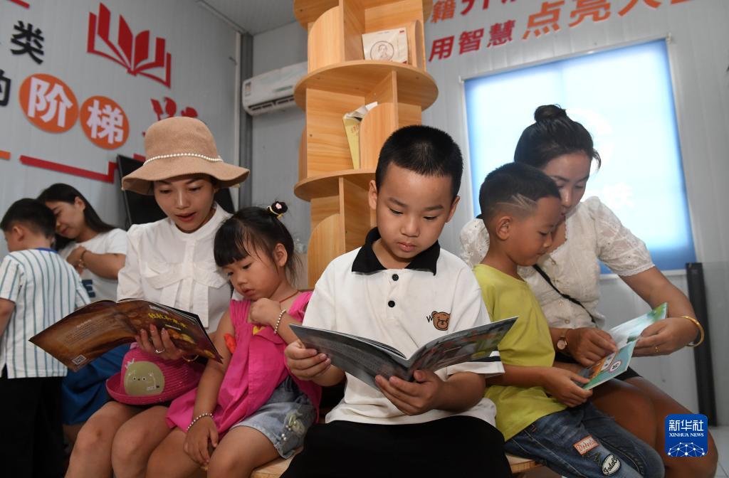 7月26日,在廣西上橫高速公路建設項目部,小朋友們在家長的陪伴下閱讀書籍。