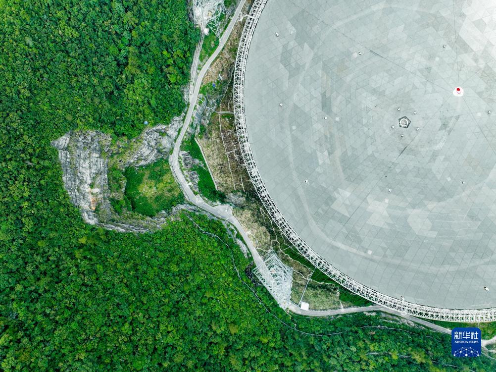 7月26日拍攝的“中國天眼”一景(維護(hù)保養(yǎng)期間無人機(jī)拍攝)。