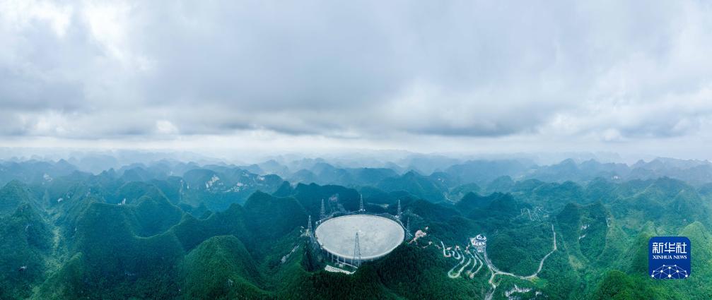 7月26日拍攝的“中國天眼”全景(維護保養(yǎng)期間無人機拍攝)。