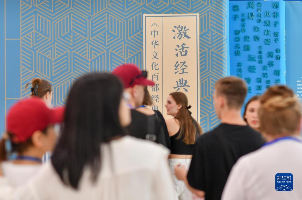 俄羅斯薩拉托夫州曙光歌舞團(tuán)的歌舞演員在新疆圖書館參觀(7月23日攝)。