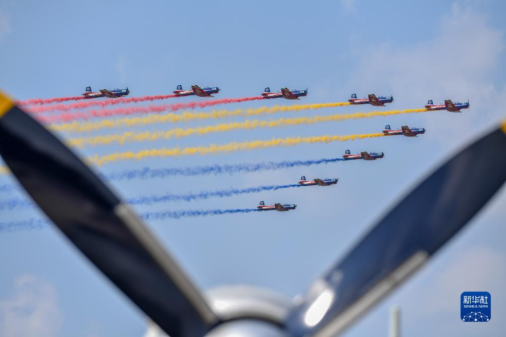 7月26日,在2023年空軍航空開放活動·長春航空展上,空軍航空大學“天之翼”飛行表演隊進行飛行表演。