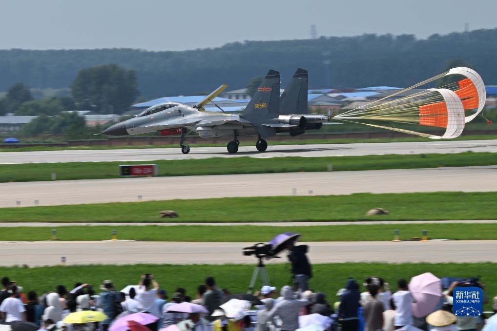 7月26日,在2023年空軍航空開放活動·長春航空展上,殲-11BS模擬空戰歸來。