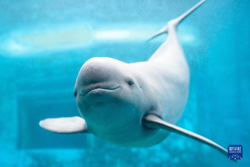 7月5日,一頭長江江豚在白鱀豚館水中游動。