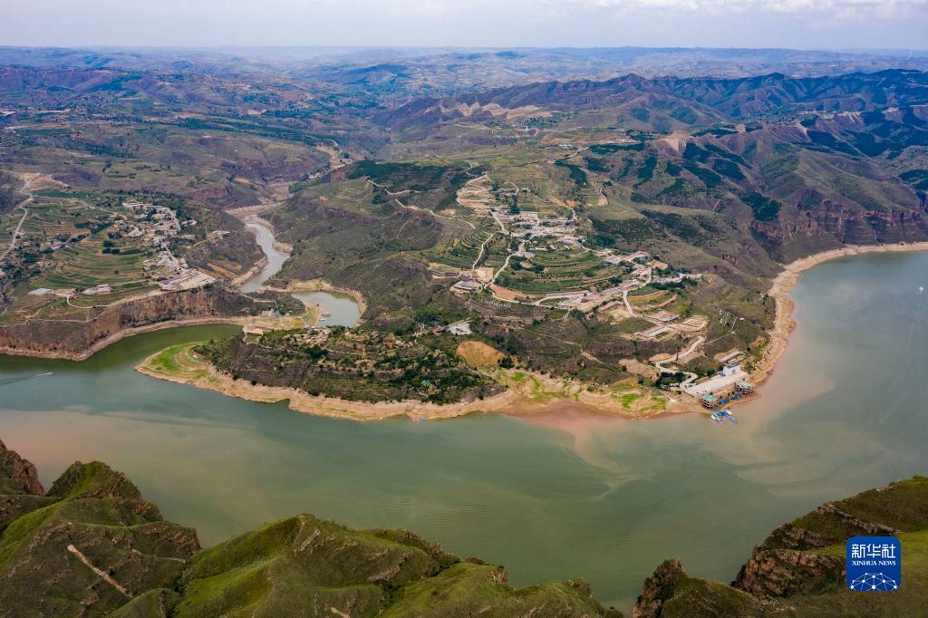 夏日,從空中俯瞰位于山西省和內蒙古自治區交界處的黃河老牛灣,峽谷兩岸壁立千仞,黃河蜿蜒奔流不息,風景壯美如畫。