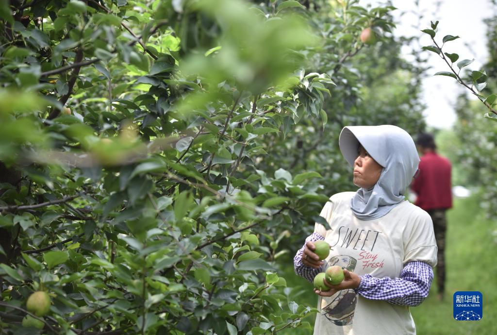 7月27日,河北省威縣張營鄉(xiāng)前花疃村果農(nóng)在梨園采摘梨果。