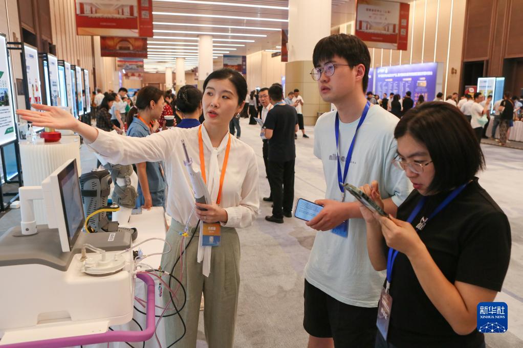 7月26日,媒體記者在國家會展中心(上海)舉行的第六屆進博會食品及農產品、醫療器械及醫藥保健展區展前供需對接會上采訪。 新華社記者 辛夢晨 攝