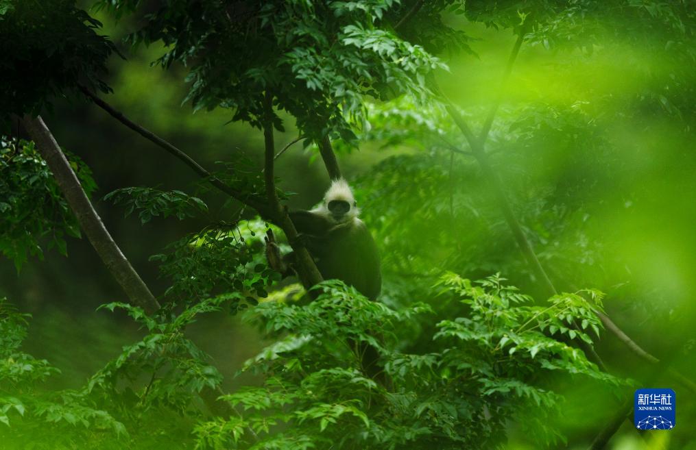一只白頭葉猴在林中休憩(8月4日攝)。