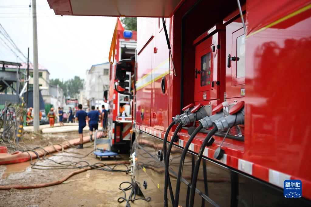 8月6日,在河北省涿州市刁窩鎮東張村,抽水設備在進行排澇作業。