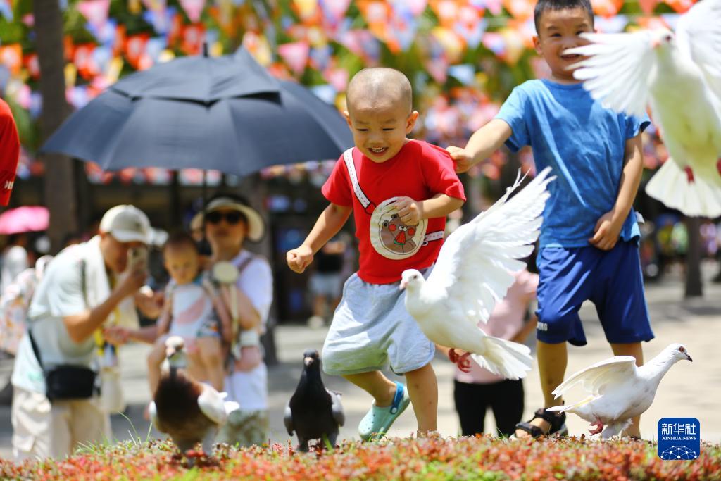 8月5日,小朋友在海南省三亞市南山文化旅游區(qū)游玩。