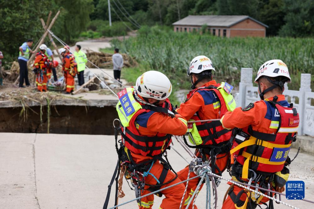 8月6日,吉林市消防救援支隊隊員利用繩橋解救受困村民。