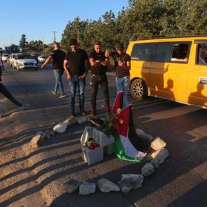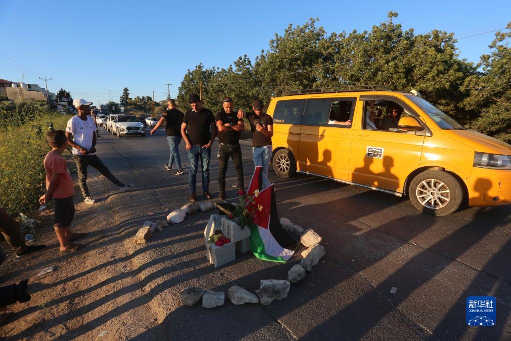 8月6日,人們在約旦河西岸城市杰寧的事發地點擺放獻花等物品。