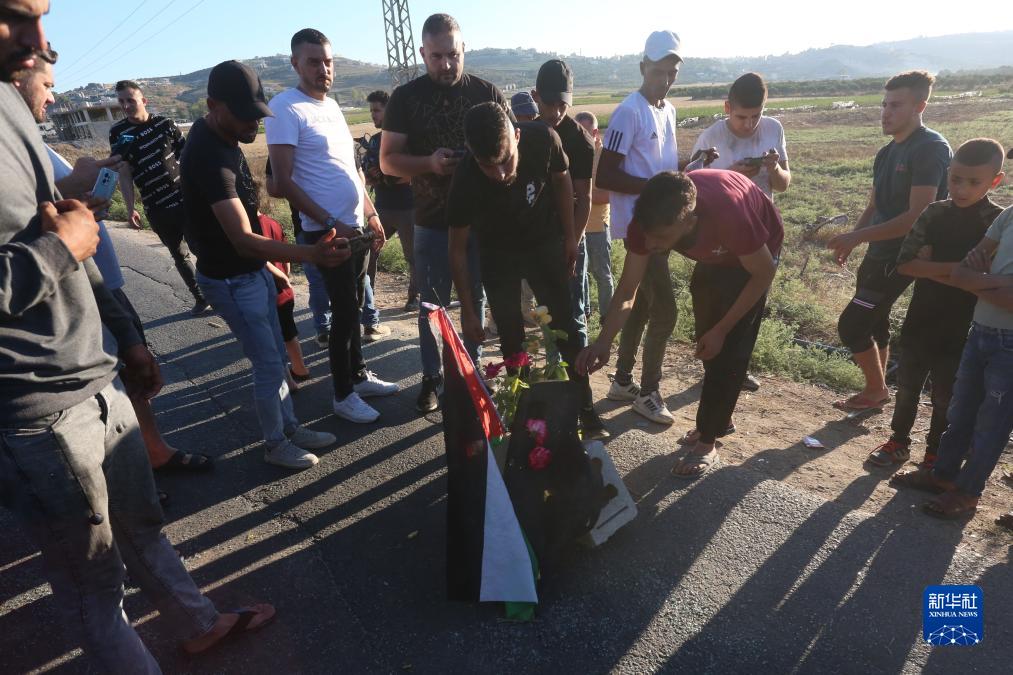 8月6日,人們在約旦河西岸城市杰寧的事發地點擺放獻花等物品。