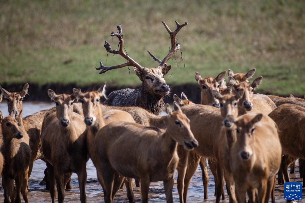“目前我們觀測到保護區內已經形成10多個麋鹿繁殖群體,大小不一?!焙笔作缏箛壹壸匀槐Wo區管理處工程師張玉銘介紹。截至5月25日,保護區今年新增460頭麋鹿幼崽,整個保護區的麋鹿種群目前近2000頭。