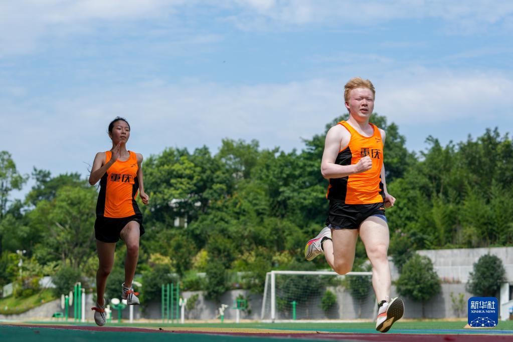 8月4日,重慶市特殊教育中心田徑隊(duì)隊(duì)員在進(jìn)行短跑項(xiàng)目訓(xùn)練。