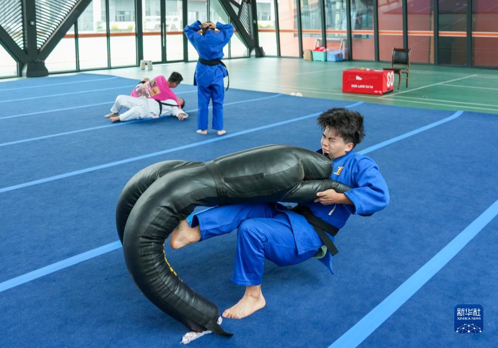 8月4日,重慶市特殊教育中心柔道隊隊員周涵在進行訓練。