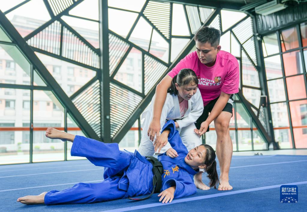 8月4日,重慶市特殊教育中心柔道隊(duì)隊(duì)員在教練劉祖宇(右一)指導(dǎo)下進(jìn)行訓(xùn)練。
