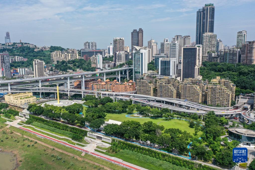 這是8月6日拍攝的位于重慶長江岸邊的珊瑚公園一景(無人機照片)。