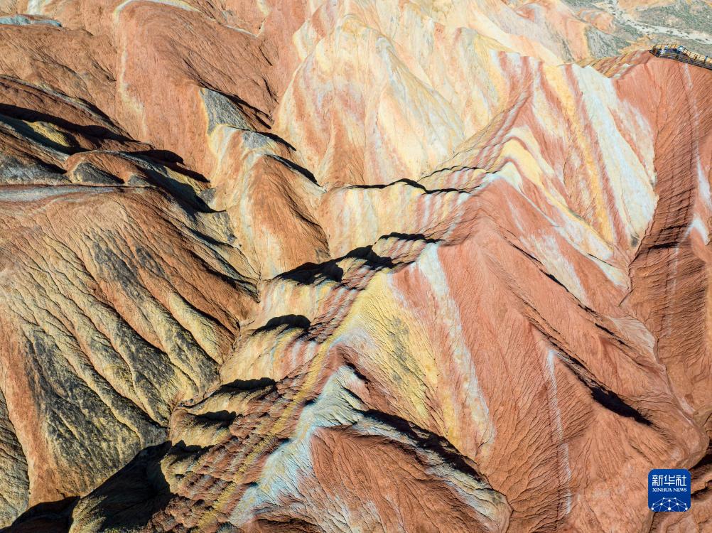 這是8月7日在張掖七彩丹霞景區(qū)拍攝的丹霞景觀(無人機照片)。