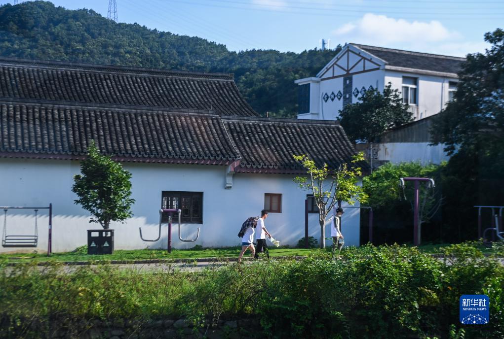 8月7日,游客在舟山市定海區(qū)新建村游覽。