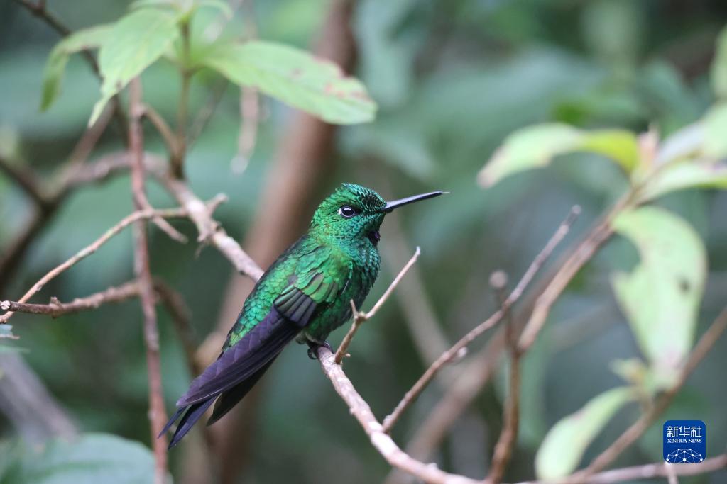 7月24日,一只綠頂輝蜂鳥停在哥斯達黎加蒙特韋德云霧森林生物保護區的樹枝上。