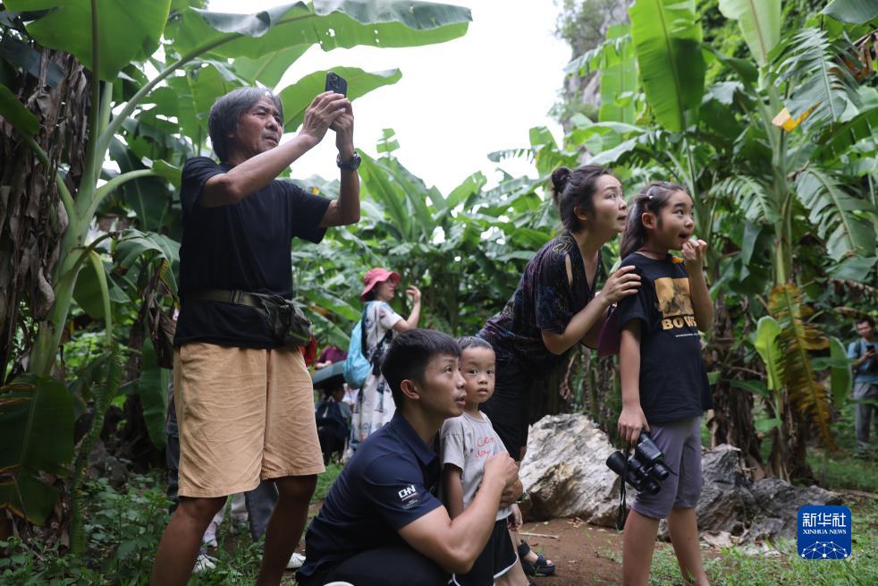 8月5日,游客在位于廣西崇左的白頭葉猴國家級自然保護區板利片區拍攝白頭葉猴。