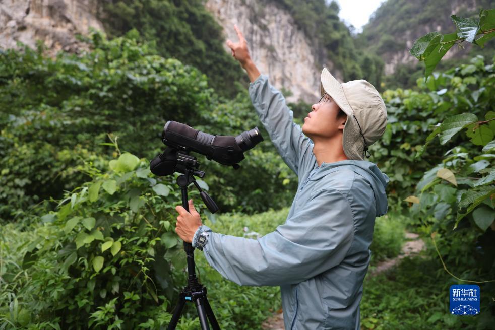 8月5日,李文欽用手指向白頭葉猴所在的方位。
