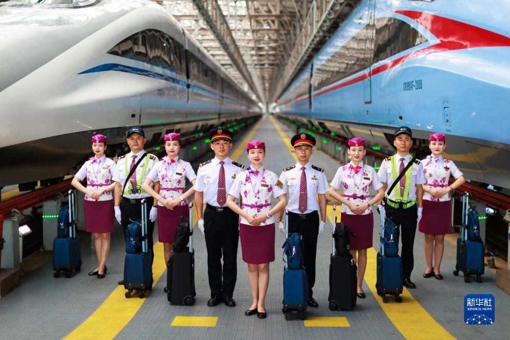 8月7日,擔(dān)任首發(fā)列車值乘工作的班組在貴陽亮相。