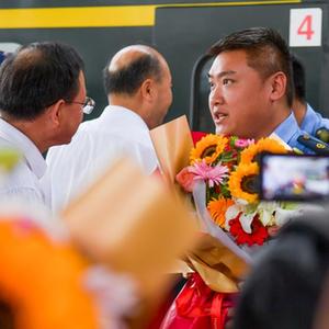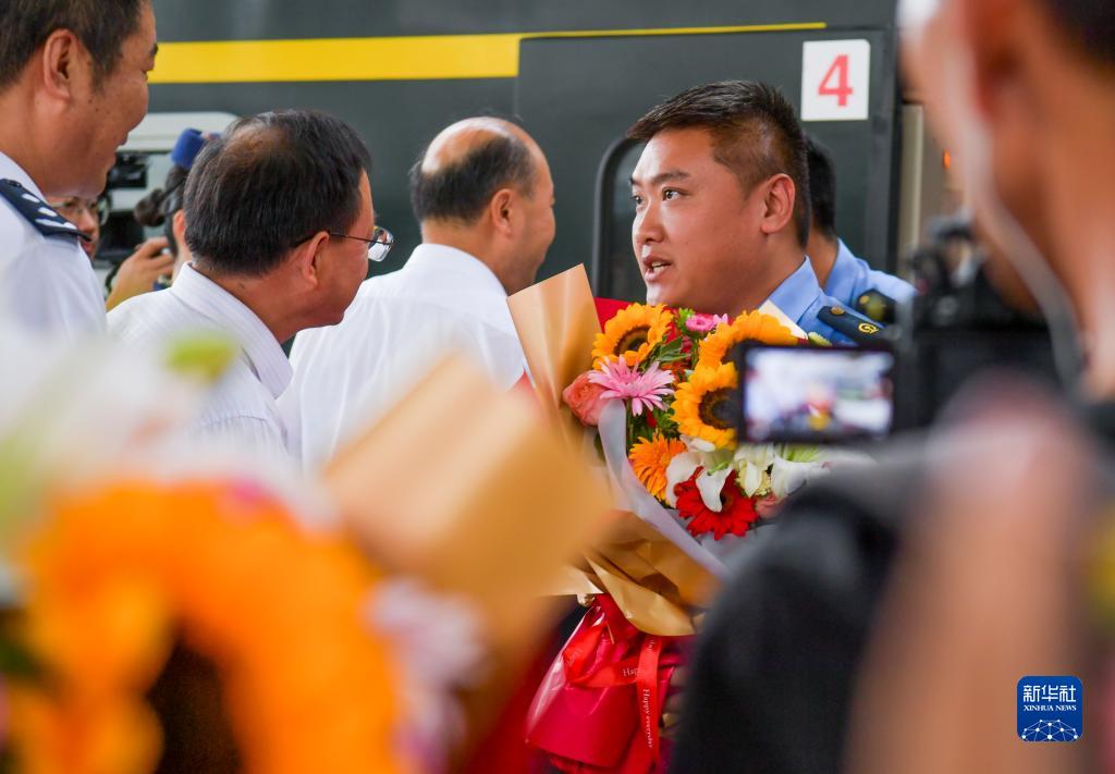 因強降雨滯留北京的Z180次列車乘務組于當日返回烏魯木齊,乘務人員的家屬、同事等前往烏魯木齊站迎接。